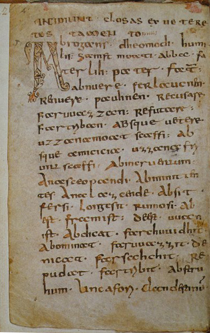 Die ersten Spuren deutscher Schriftsprache sind sogar noch etwas älter als der Abrogans. Sie finden sich in lateinischen Handschriften, bei denen Mönche deutsche Wörter als Übersetzungshilfen an den Rand oder zwischen die Zeilen geschrieben hatten. Etwa 2/3 des althochdeutschen Wortschatzes sind uns durch solche „Glossen“ überliefert worden.
